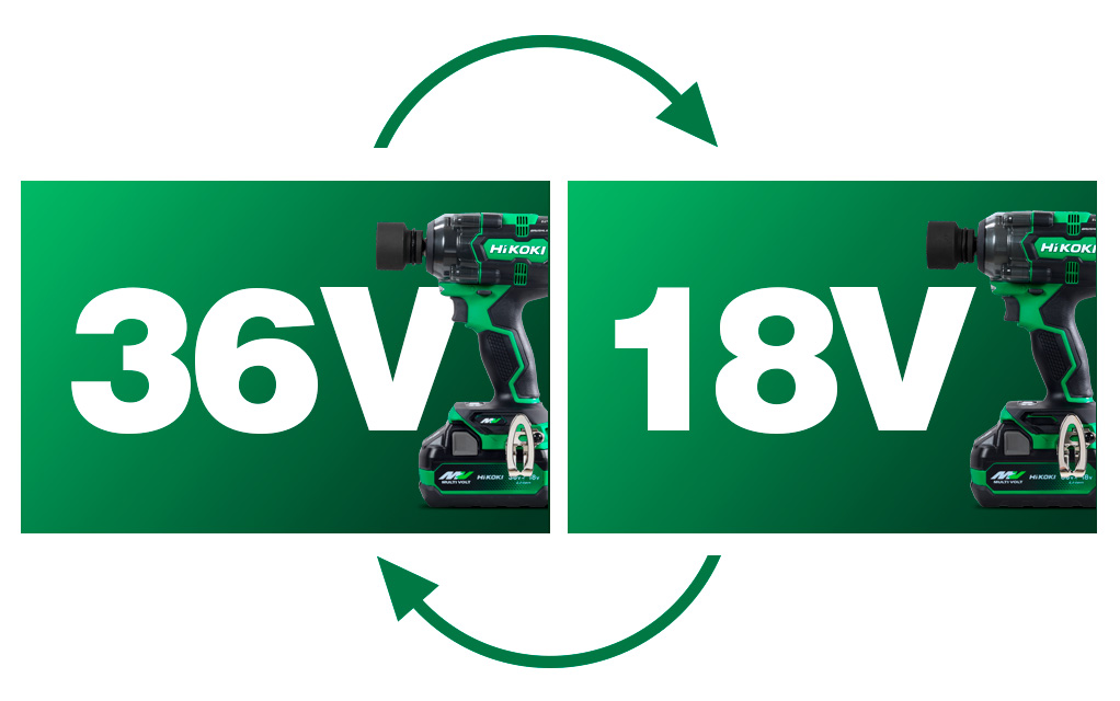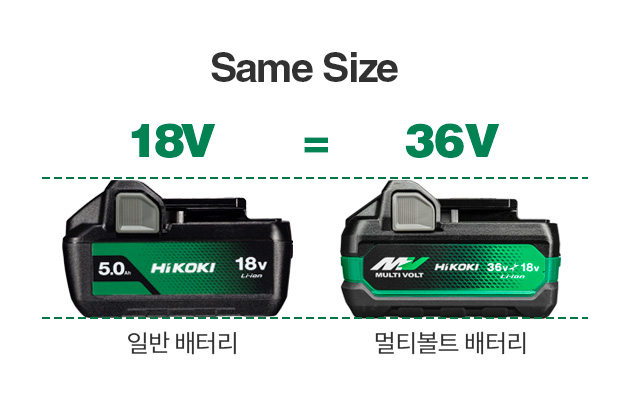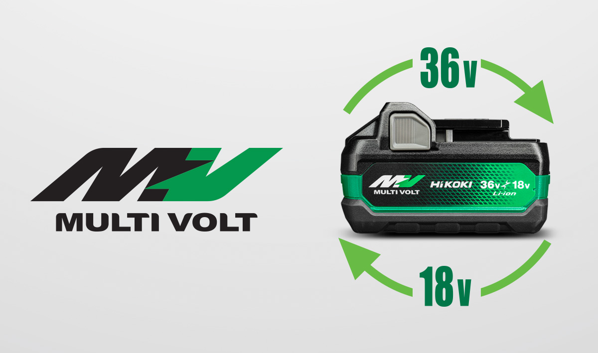 하이코키 전동공구의 **Multi Volt(멀티볼트)**는 배터리 하나로 36V의 강력한 성능과 18V의 호환성을 동시에 제공하는 하이브리드 전동공구 배터리 시스템입니다.