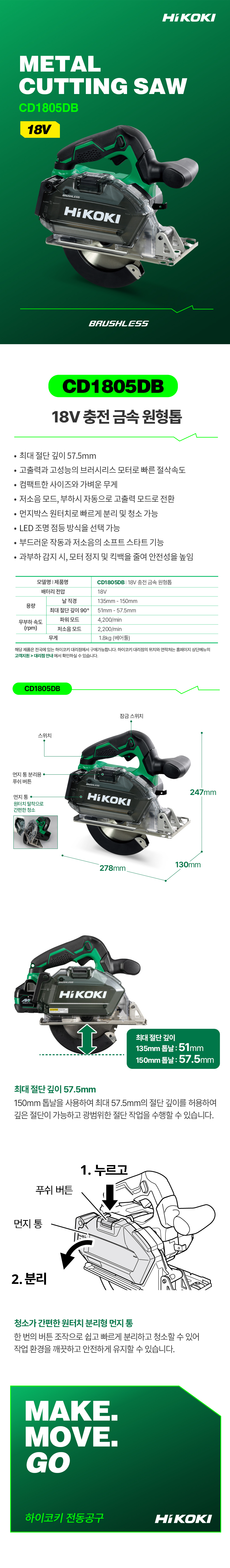 ■ 고출력과 고성능의 브러시리스 모터로 빠른 절삭속도