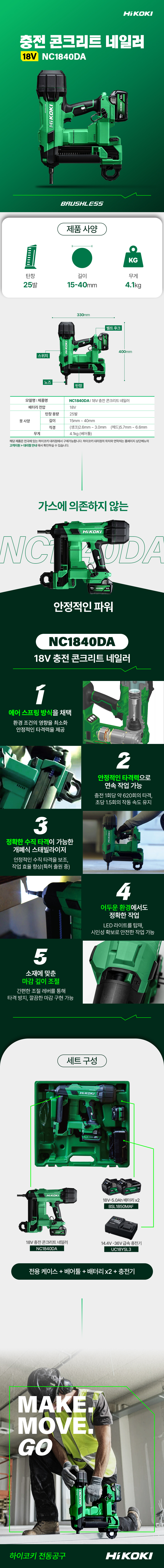 NC1840DA 18V 충전 콘크리트 네일러