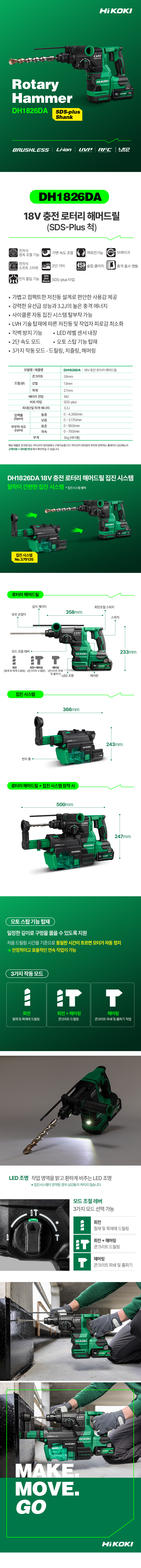 ■ 3가지 작동 모드 – 드릴링, 치즐링, 해머링